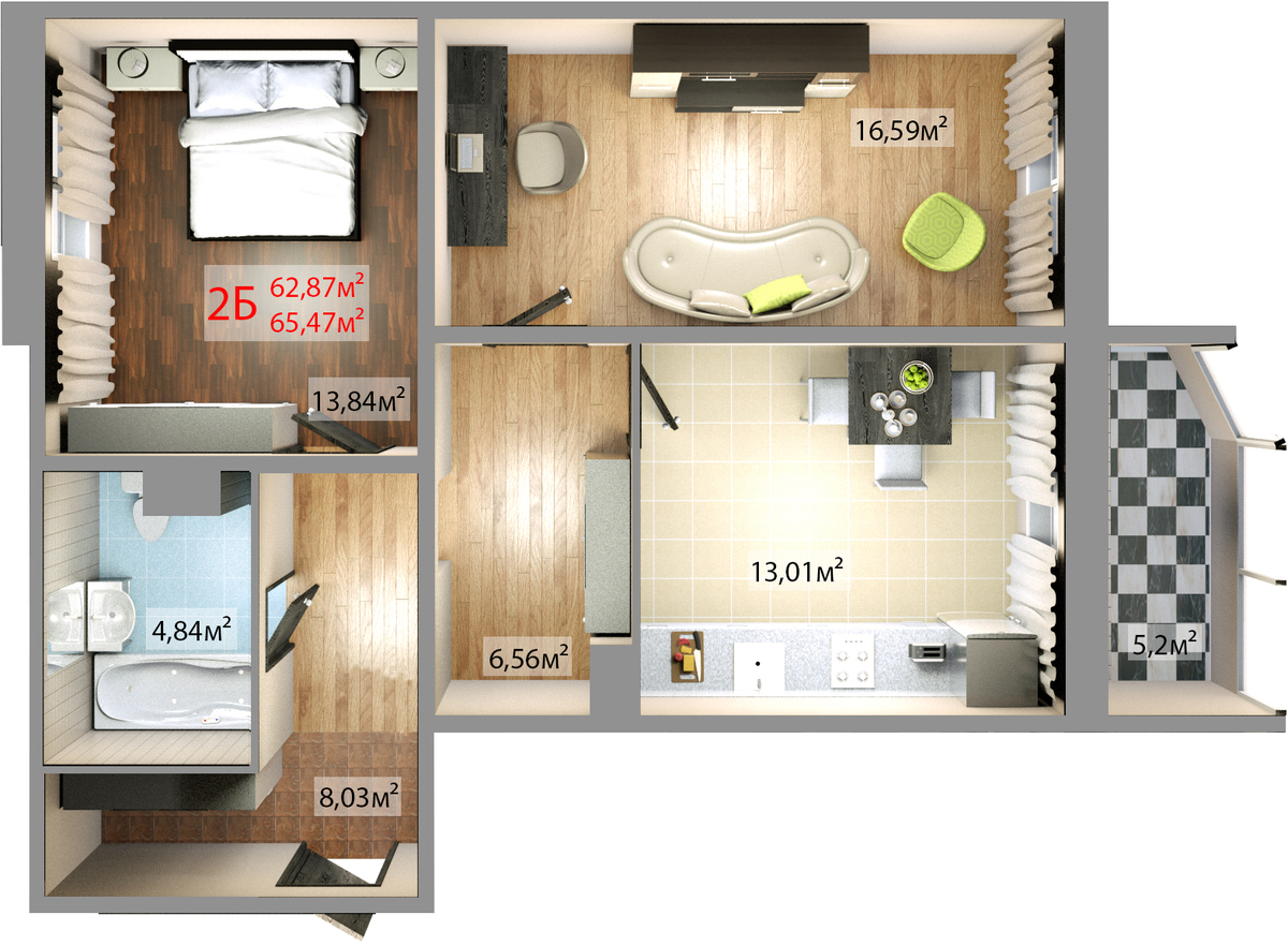 Двухкомнатная квартира